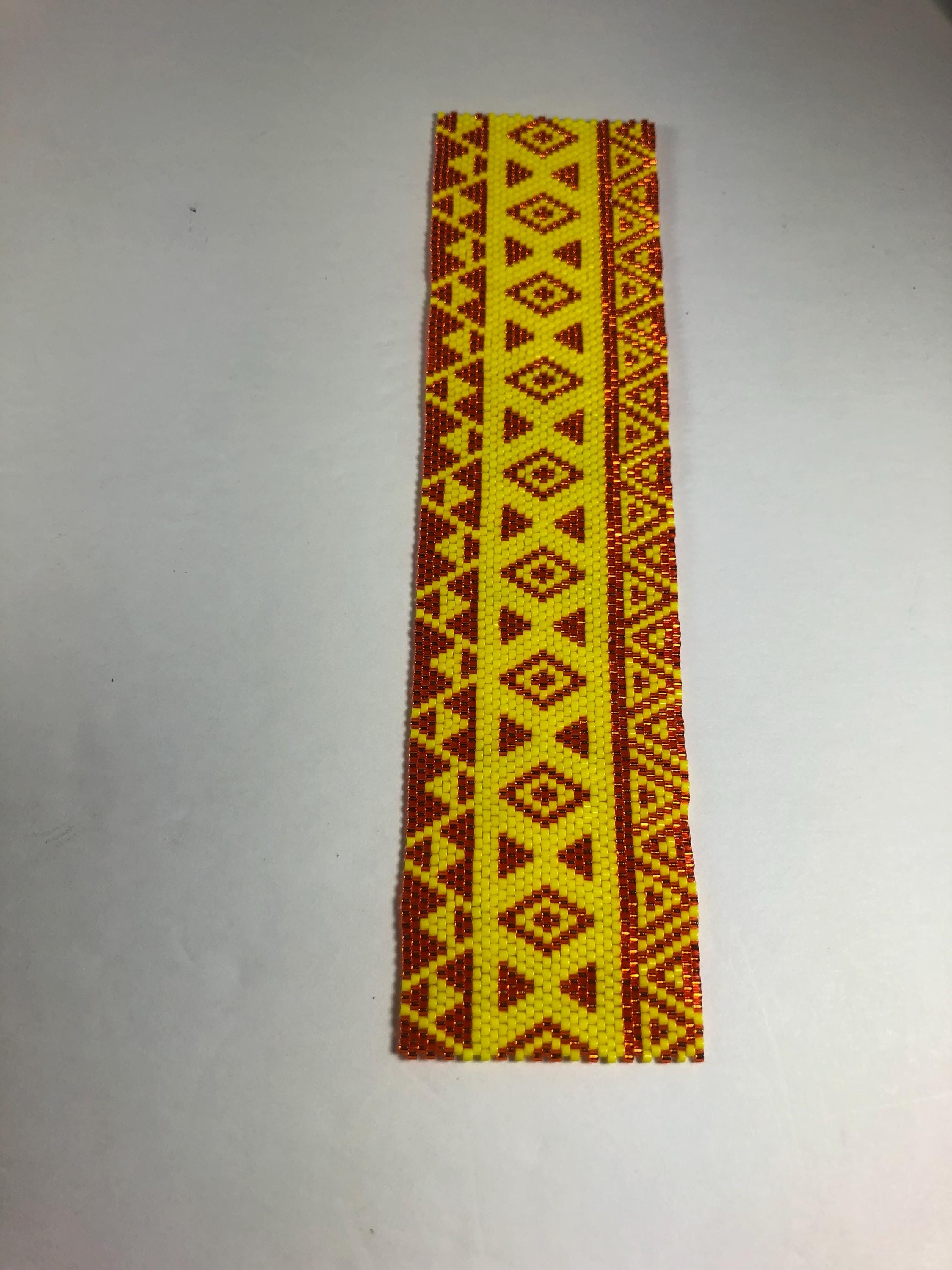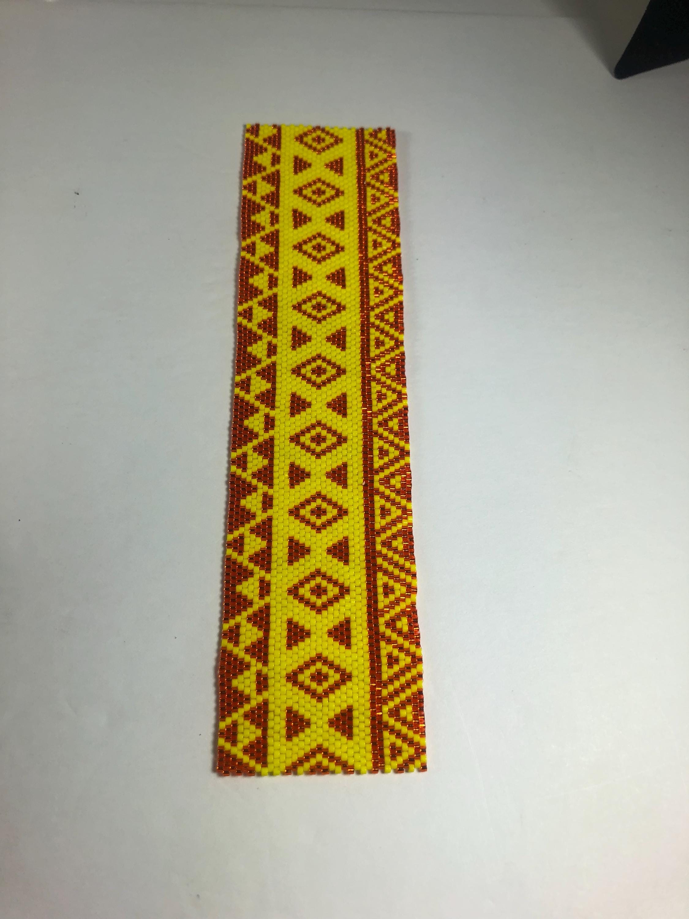 This particular pattern, “Orange Yellow” Peyote Bracelet pattern is done in an even count peyote stitch.