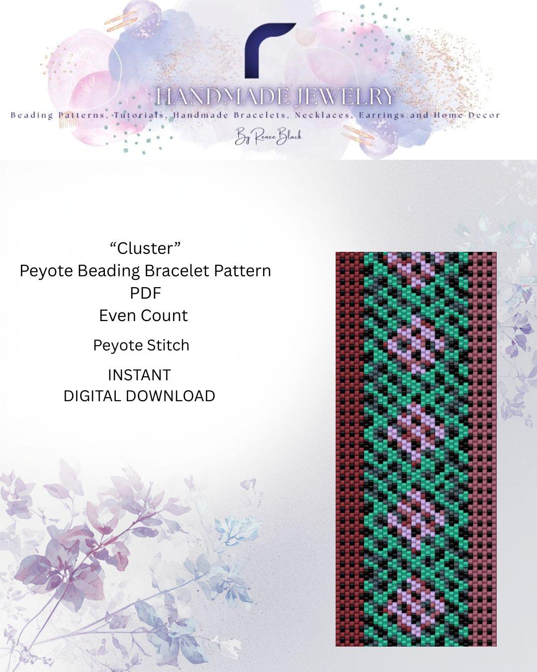 This pattern, called “Cluster,” is great for beginners to intermediate in the knowledge of peyote stitch.